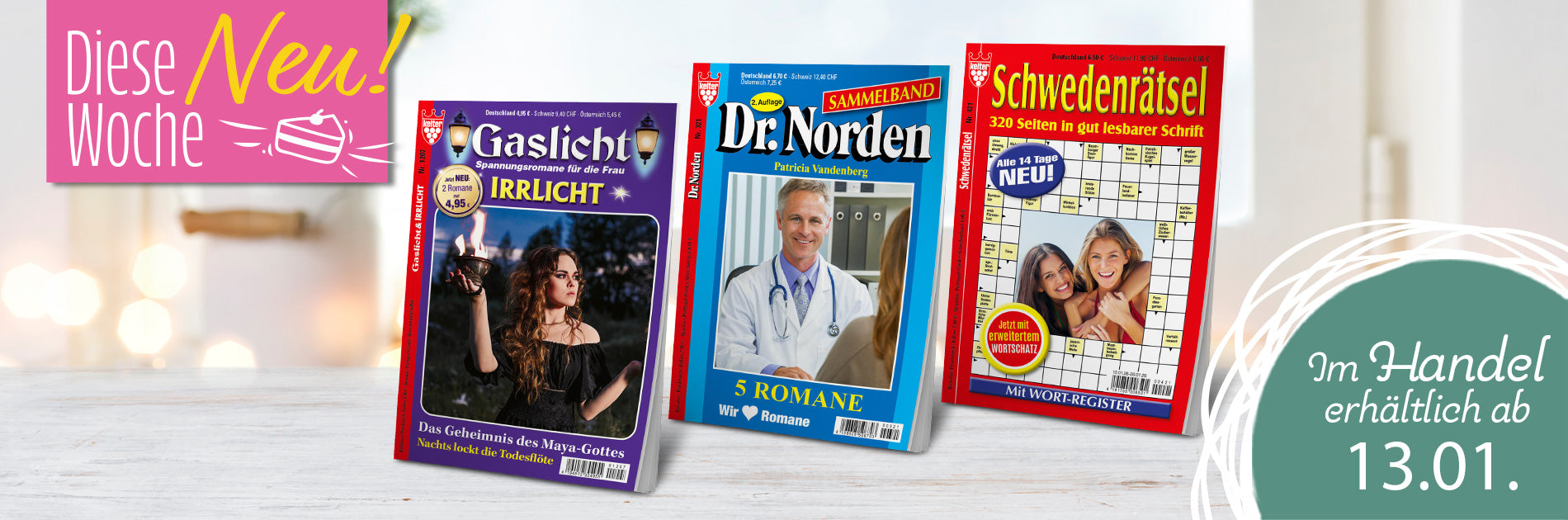 Lesen und Raten ist schöner denn je! Diesem stolzen Anspruch fühlt sich unser aktuelles Verlagsprogramm verpflichtet. Dr. Norden: Ein Arzt schreibt Geschichte. Jetzt bereits seit fast 40 Jahren und bald 1200 Romanen. In unseren Arztroman-Serien Dr. Norden, Dr. Laurin, Der Arzt vom Tegernsee, Dr. Daniel und Der neue Landdoktor finden die Patienten eine umfassende Betreuung, wie man sie sich nur wünschen kann. Hier ist der Kranke nicht nur ein medizinischer Fall, sondern zählt als Mensch, mit all seinen Hoffnungen und Sorgen, die das Leben ausmachen. Warmherzige Ärzte widmen sich ihren Patienten mit dem ganzen Einsatz ihrer Person – tatkräftig, hilfsbereit, freundlich auch in den Momenten größter ärztlicher Anspannung.